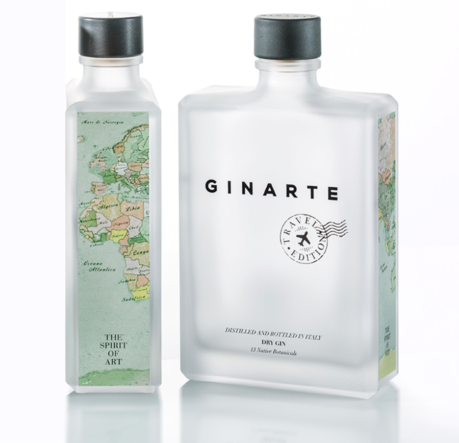 A rafforzare la distintività dell’edizione è un concept visivo inedito. L’iconica bottiglia Ginarte da 70 cl, proposta in esclusiva nei Travel Outlet degli aeroporti nazionali e internazionali, presenta un’etichetta laterale che riproduce, in chiave volutamente casuale, sei sezioni di una cartografia mondiale. Il valore creativo emerge pienamente quando le bottiglie vengono affiancate: le diverse porzioni si ricompongono in un’unica mappa, trasformando ogni singolo prodotto in parte di una narrazione più ampia.